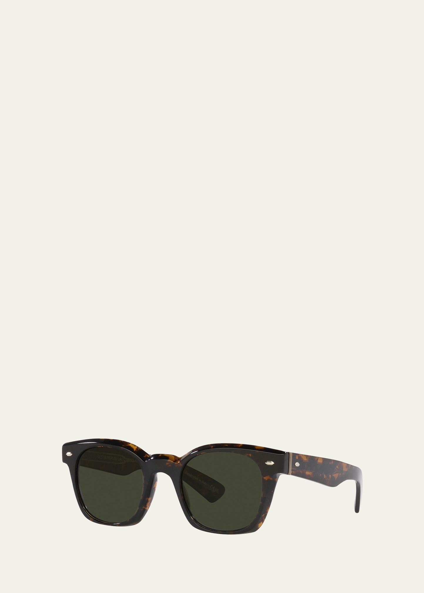 Oliver Peoples introduces the Merceaux: A new series of frames defined by its bold aesthetic and inspired by the distinctive style of the 1960s Oliver Peoples "The Merceaux" square sunglasses feature hexagon accents at front frames and temples Eye/bridge/temple (in mm): 50-23-145 Polarized, solid-color lenses Full-rim frames Curved temple tips Acetate 100% UVA/UVB protection Made in Italy