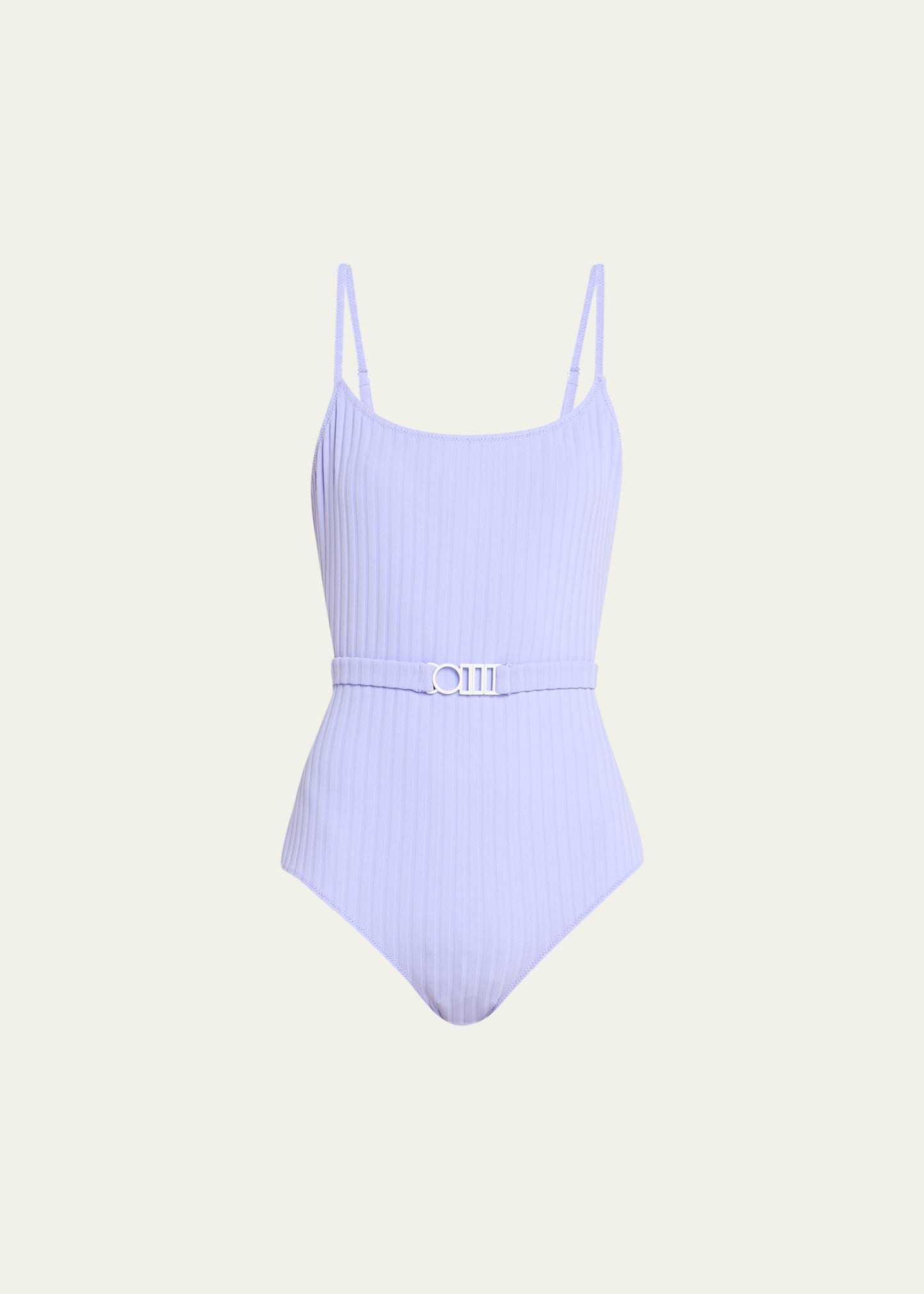 Solid and Striped "The Nina" one-piece swimsuit in a solid ribbed construction Scoop neckline enhances curves Adjustable straps Belted waist Scoop back Moderate seat coverage Nylon/polyamide/Lycra® spandex Made in Morocco