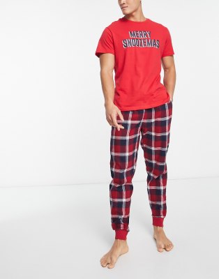 Pajamas by Threadbare Includes a T-shirt and pair of pants Regular-fit T-shirt Crew neck 'Merry Snoozemas' text print Regular, tapered-fit pants Elasticated drawstring waist Two pockets Fitted cuffs