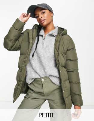 Threadbare Petite Hayley mid length puffer jacket in khaki-Green