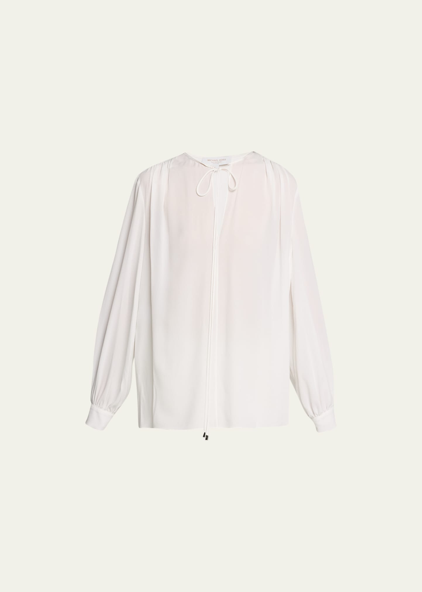 Michael Kors Collection crepe blouse Crew neckline with tie front Long sleeves; button cuffs Back yoke; pleats Relaxed fit Pullover style Silk Dry clean Made in Italy