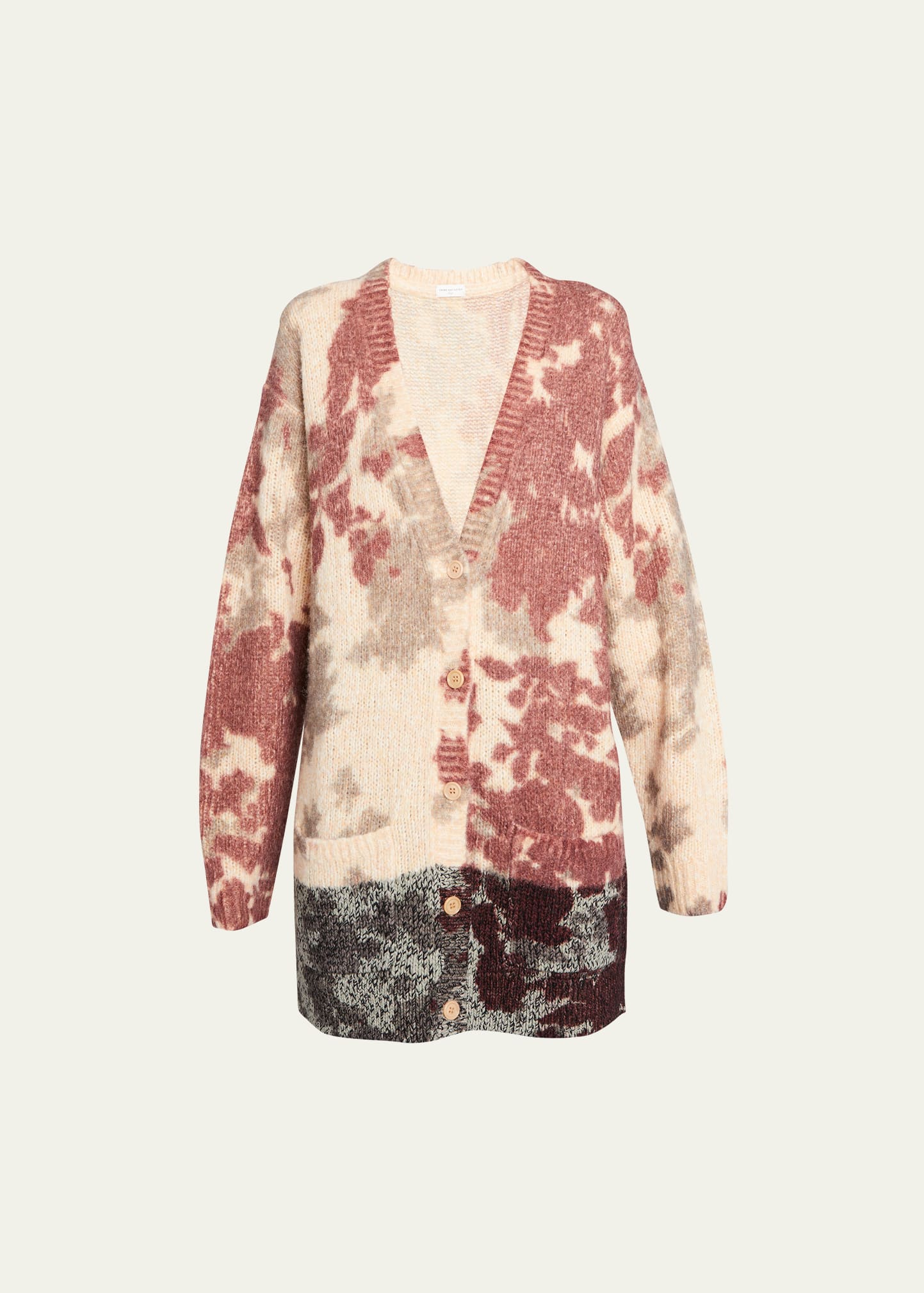 Dries Van Noten "Toka" cardigan in a floral pattern V neckline; button front Dropped shoulders Long sleeves Front slip pockets Ribbed cuffs and hem Hem falls above the knee Wool/merino wool Dry clean Imported