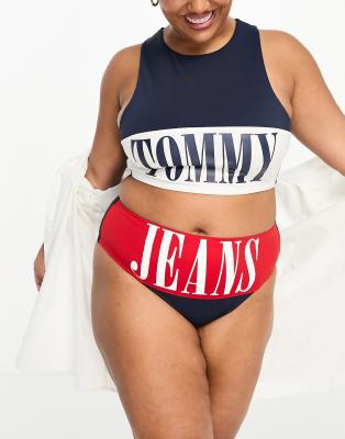 Tommy Jeans Plus Archive high waist cheeky bikini bottoms in navy and red-Multi