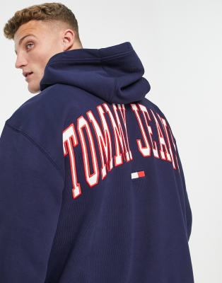 Tommy Jeans relaxed fit collegiate back logo hoodie in navy
