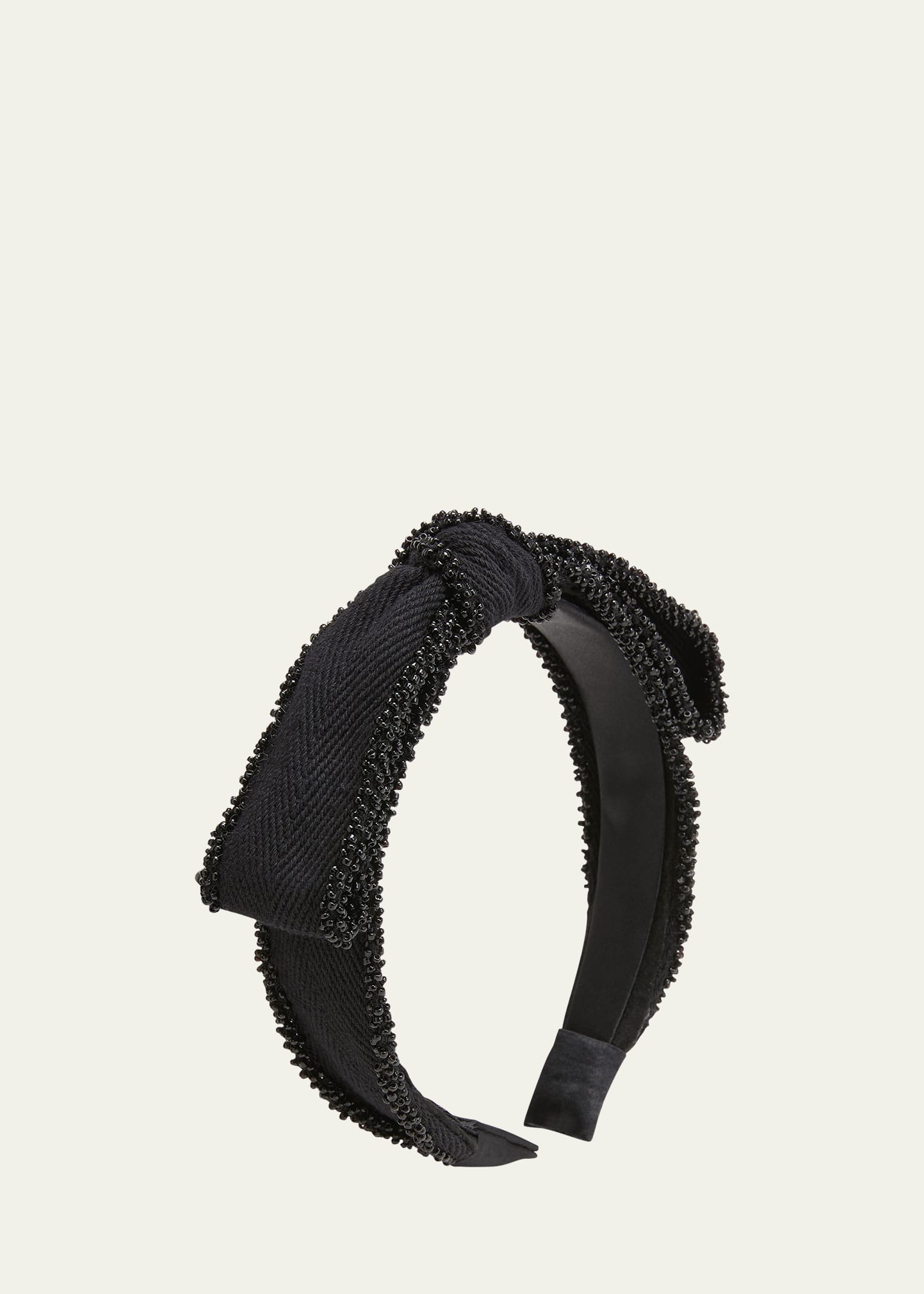 Natasha Accessories Limited headband in cotton, plastic beads, and polyester satin Bow accent Made in USA