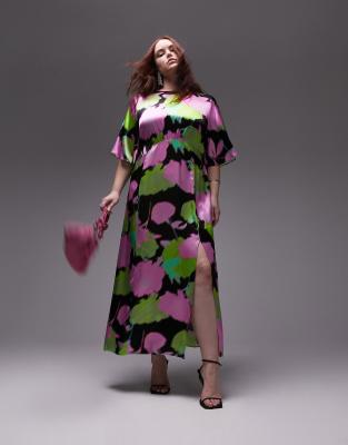 Topshop Curve bold floral print angel sleeve midi occasion dress in multi