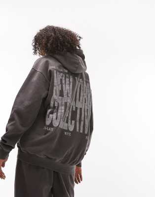 Topshop graphic New York Collective oversized hoodie in charcoal - part of a set-Gray
