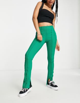 Petite pants by Topshop Waist-down dressing High rise Elastic waist Exposed seam details Split cuffs Flared skinny fit