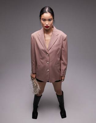 Topshop Tailored oversized blazer with twisted sleeve in pink - part of a set