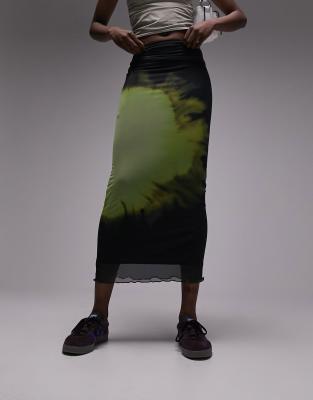 Topshop Tall mesh blurred space print picot trim midi skirt in multi