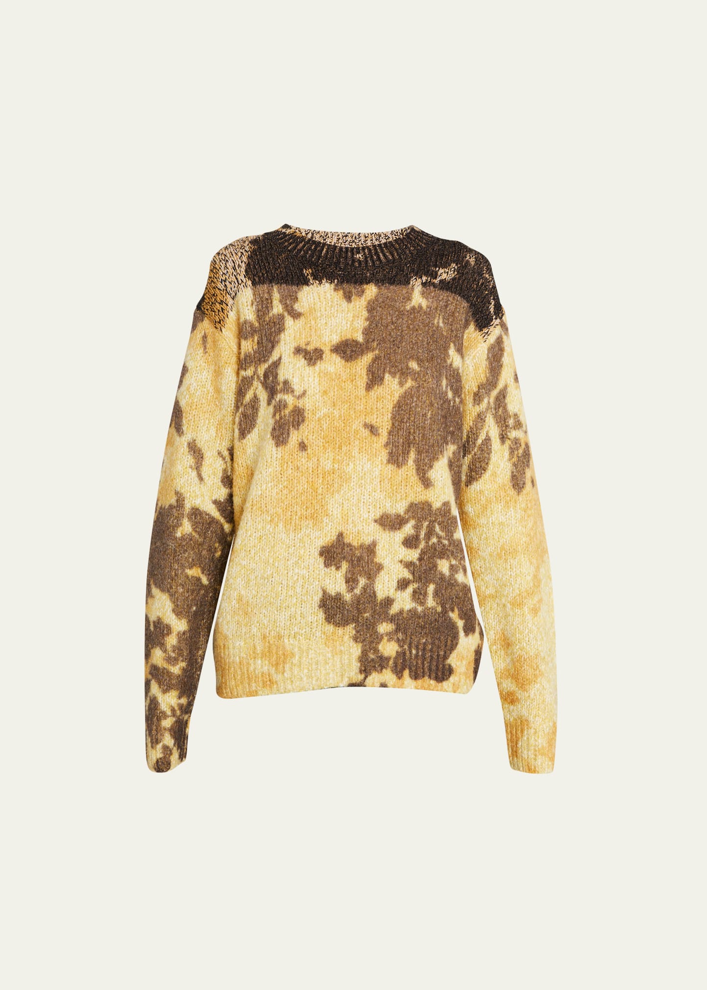 Dries Van Noten "Tout" sweater in a floral pattern Crew neckline Dropped shoulders Long sleeves Relaxed fit Ribbed cuffs and hem Pullover style Wool/merino wool Dry clean Imported