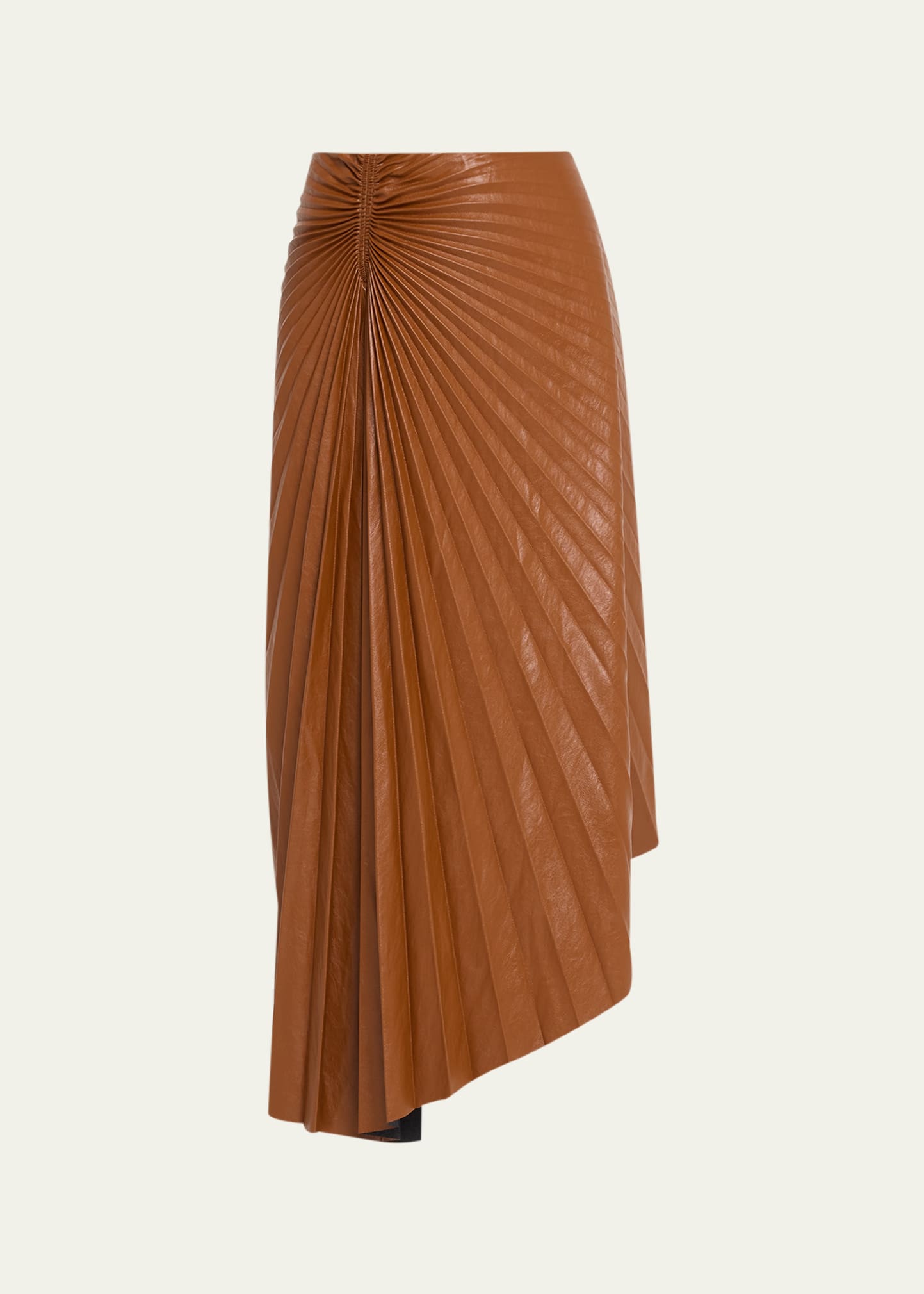 A.L.C. "Tracy" faux-leather midi skirt with gathering at one side finished with pleating High rise A-line silhouette High-low hem Viscose/polyester/cotton Lining: Elastane/polyurethane Dry clean Imported