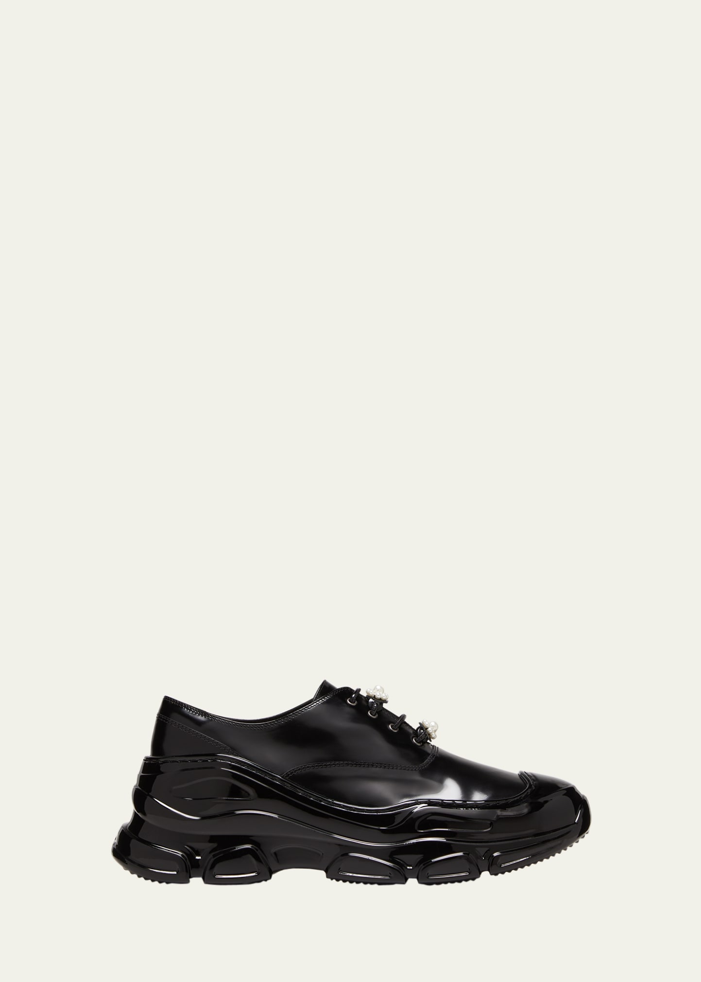 Simone Rocha sneakers in patent calf leather and sheep leather 1.50 in / 40 mm pfatform heel Round toe Lace-up vamp with embellishments Made in Portugal