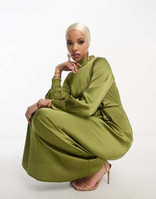Dresses by TRENDYOL Love at first scroll High neck Long sleeves Gathered waist Zip-back fastening Regular fit
