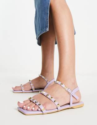 Truffle Collection studded strappy flat sandals in lilac-Purple