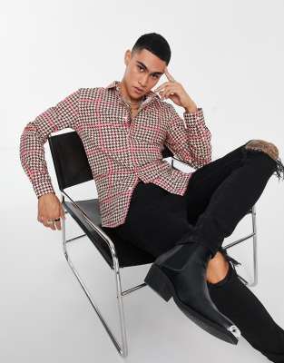 Shirts by Twisted Tailor Love at first scroll Houndstooth print Spread collar Button placket Slim fit