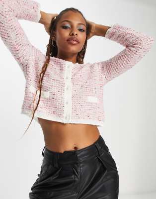 Urban Revivo boucle knit cardigan with pearl buttons in pink