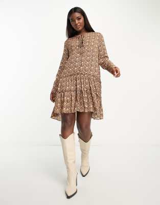 Dresses by Urban Revivo Do get caught wearing it twice Floral design Lace-up front Long sleeves Regular fit
