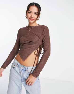 Tops by Urban Revivo Your sign to stop scrolling Crew neck Long sleeves Ruched, tie side Regular fit