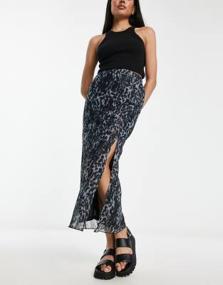 Urban Threads mesh midaxi skirt with lettuce hem in gray leopard print-Brown