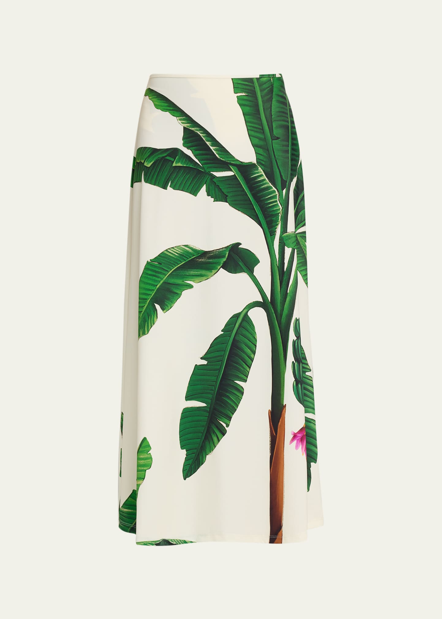 Johanna Ortiz "Urubamba" skirt features a signature palm tree print Low-rise Ankle length A-line silhouette Slip-on style Nylon/elastane Made in Colombia