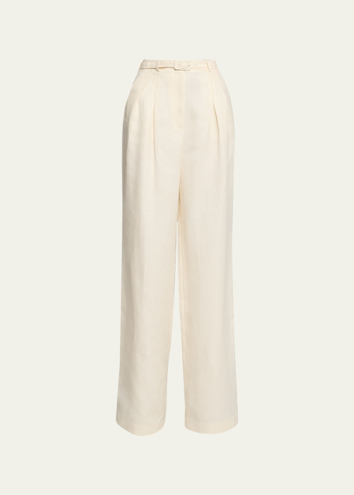 Gabriela Hearst "Vargas" belted wide-leg trousers High rise Button/zip fly; belt loops Adjustable belted waist Side slip pockets; back welt pockets Wide legs Full length Relaxed fit Linen Made in Italy