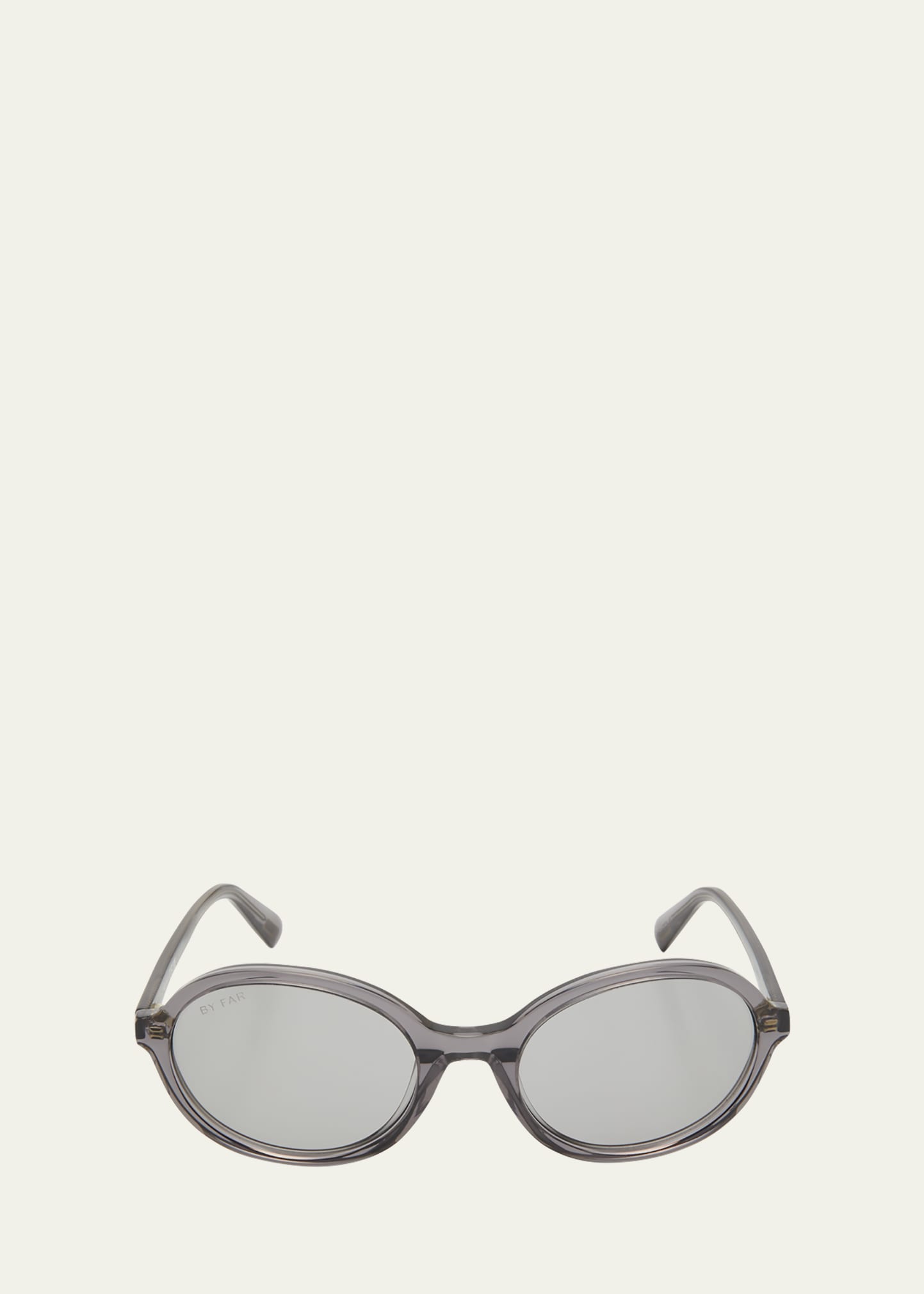 BY FAR "Velvet" round sunglasses in semi-transparent acetate Lens/bridge/temple (in mm): 54-20-140 Solid lenses; logo on corner Saddle nose bridge Monogram accent on temples Thin, tapered arms 100% UVA/UVB protection Imported