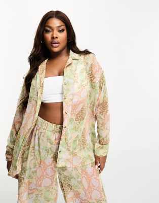 Vero Moda Curve beach shirt in pastel snake print - part of a set-Neutral
