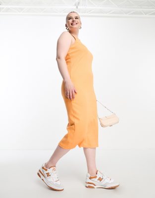 Vero Moda Curve sleeveless jersey body-conscious midi dress in orange