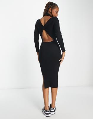 Vero Moda high neck knitted midi dress with cut out cross back in black