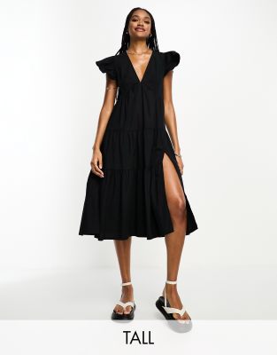 Dresses by Vero Moda Tall Do get caught wearing it twice Plunge neck Frill sleeves Thigh-high slit Regular fit