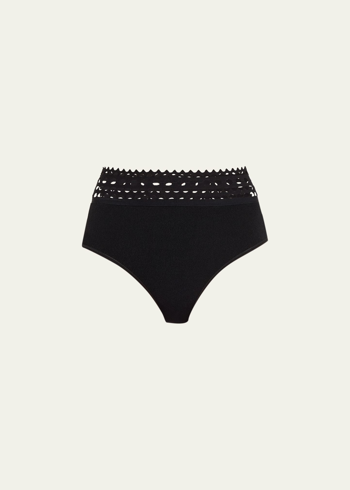 ALAIA "Vienne" brief shorts featuring an open-knit trim High rise Moderate seat coverage Viscose/polyester Dry clean Made in Italy