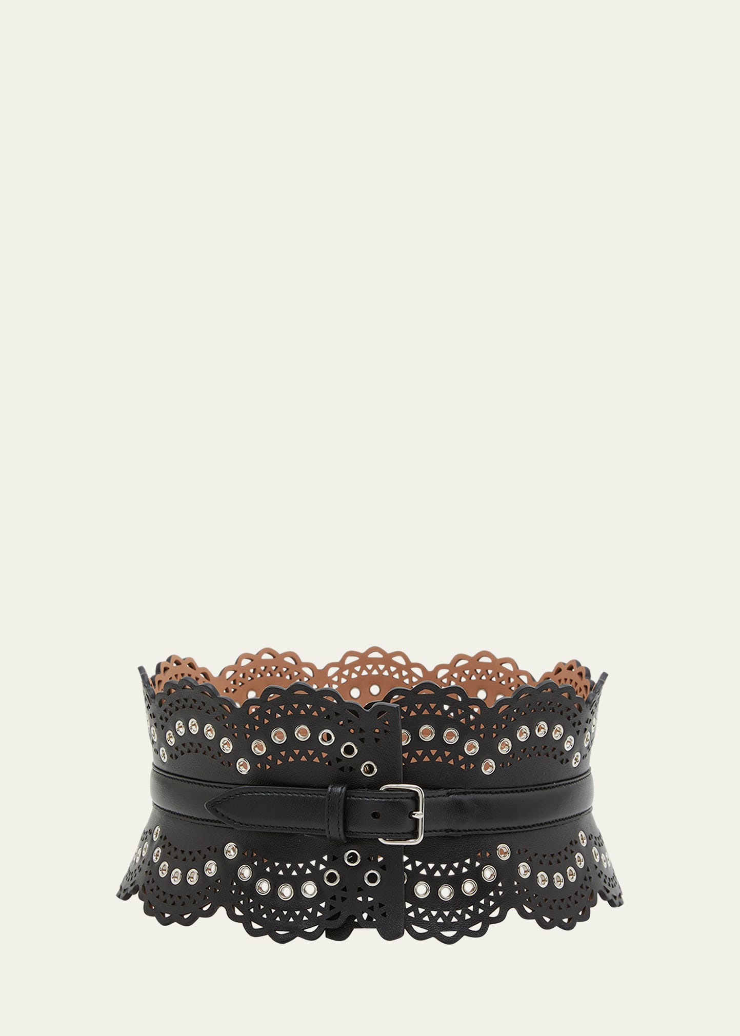 ALAIA Grommet "Vienne" corset belt in lambskin leather features grommet details throughout Approx. 120 mm Adjustable fit Made in Italy
