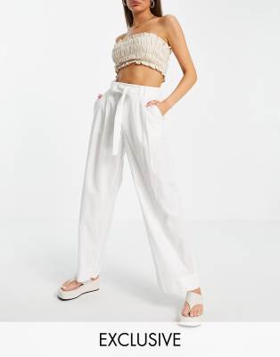 Pants by Vila Exclusive to ASOS High rise Tie waist Belt loops Side pockets Wide leg