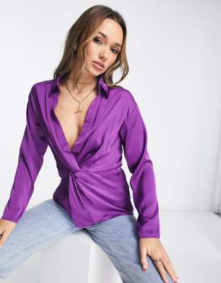 Tops by Vila Love at first scroll Spread collar V-neck Button placket Knot front Regular fit