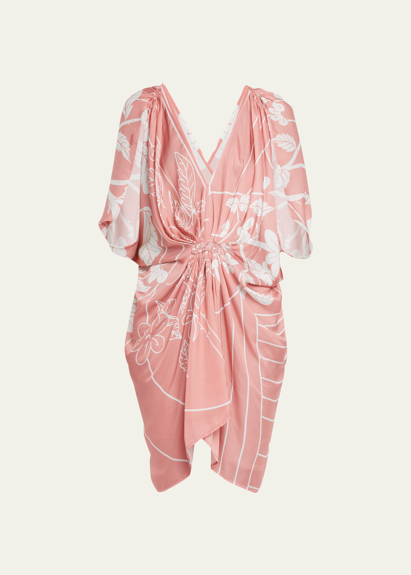 Verandah kaftan dress in Vintage Rose print is hand-draped in sustainable silk Can be worn as a dress or as a tunic with pants V neckline Elbow-length split sleeves Easy fit Hem falls above the knee Slipover style Bemberg® cupro Imported