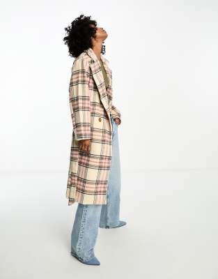Coats by VIOLET ROMANCE Throw-on appeal Check design Notch collar Button placket Belted waist Functional pockets Regular fit