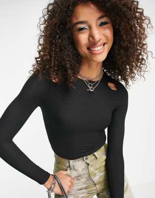 Crop Tops by Violet Romance Cuz your jeans deserve a nice top Crew neck Long sleeves Keyhole details Cropped length Slim fit