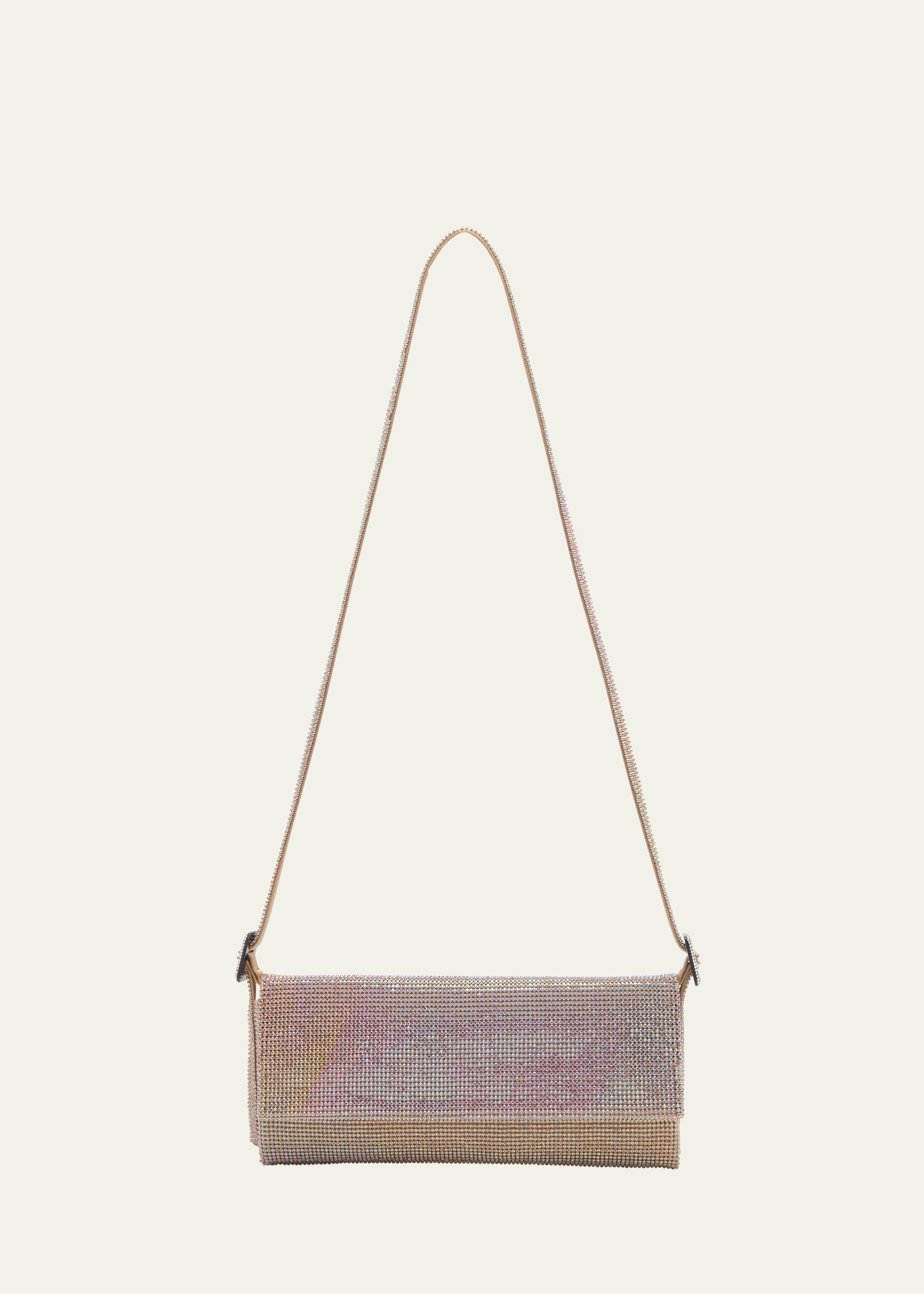 Benedetta Bruzziches "Vittissima La Grande" crossbody bag in rhinestone mesh cotton and crystals Detachable, adjustable buckle crossbody strap Flap top with magnetic closure Center zip compartment divides interior Approx. 3.9"H x 7.3"W x 0.8"D Item Weight (Lbs.): 0.9 Made in Italy