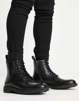 Boots by Walk London Two reasons to add to bag Pull tab for easy entry Zip side closure Lace-up front Round toe Chunky sole Molded tread