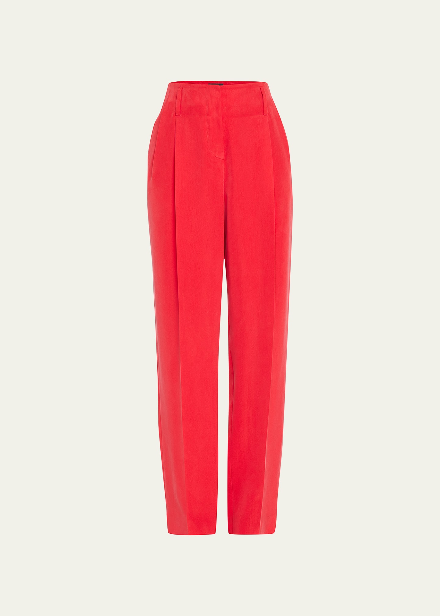 Giorgio Armani washed silk trousers with a pleated front styling Mid-rise Hook/zip fly; belt loops Side slip pockets; back welt pockets Straight legs; tapered Full length Linen Dry clean Made in Italy