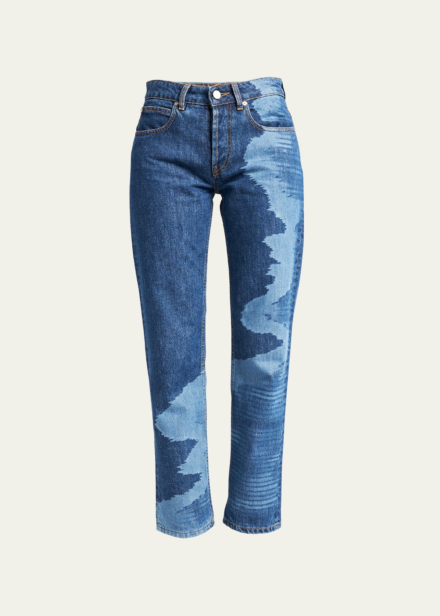 Missoni jeans featuring wavy print detail Mid rise sits high on hip Five-pocket style Straight leg Full length Button/zip fly; belt loops Cotton Made in Italy