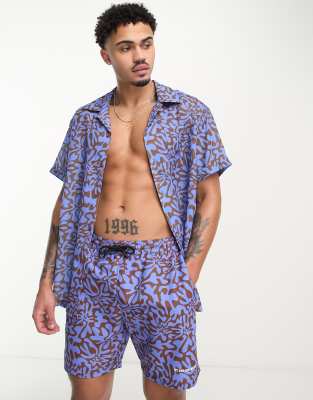 We Are We Wear short sleeve shirt in surf squiggle print - part of a set-Blue