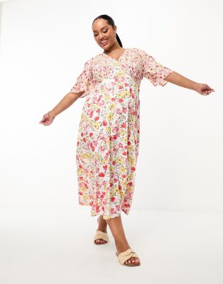 Wednesday's Girl Curve flutter sleeve chintz floral midaxi dress in multi