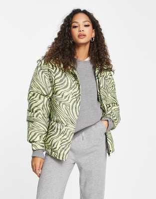 Wednesday's Girl high neck puffer coat in green wavy tiger-Multi