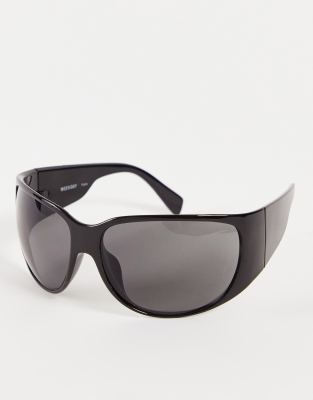 Sunglasses by Weekday Serving real shade Oversized frames Molded nose pads Dark-tinted lenses Tapered arms