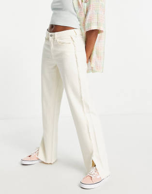 Pants by Weekday Waist-down dressing Mid-rises Belt loops Five pockets Split cuffs Raw-cut hem Straight fit