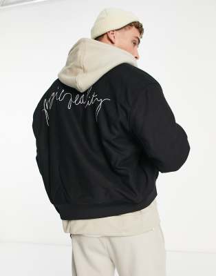 Jackets & Coats by Weekday Jacket upgrade: check Baseball collar Snap placket Side pockets Text embroidery on back Oversized fit