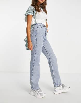 Jeans by Weekday Out of the blue, into the hue High rise Belt loops Five pockets Branded patch on back Straight fit