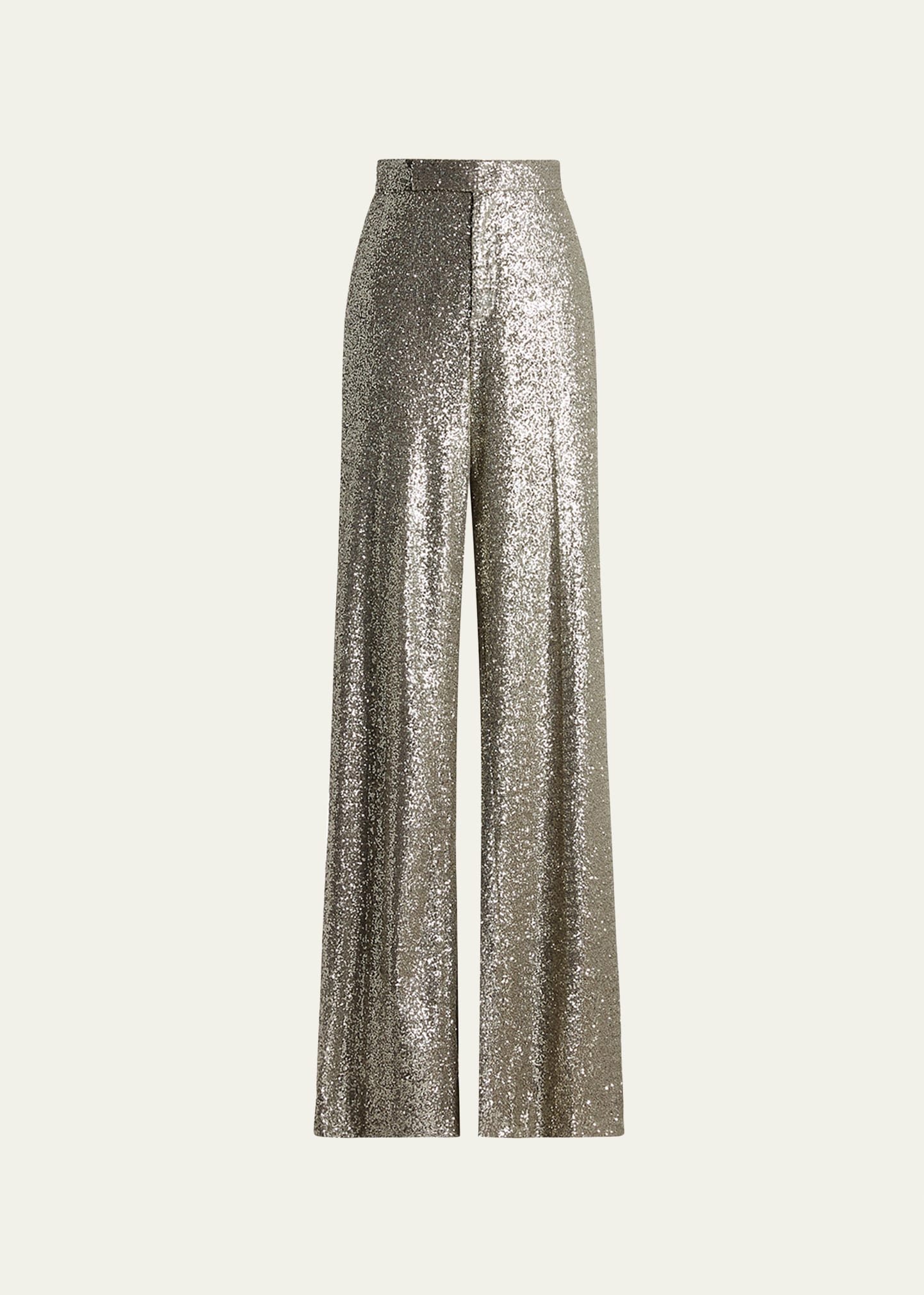 Ralph Lauren Collection "Welles" embellished pants Mid rise Side seam pockets Wide legs Full length Tab/zip fly Polyester Cupro/elastane lining Made in Italy